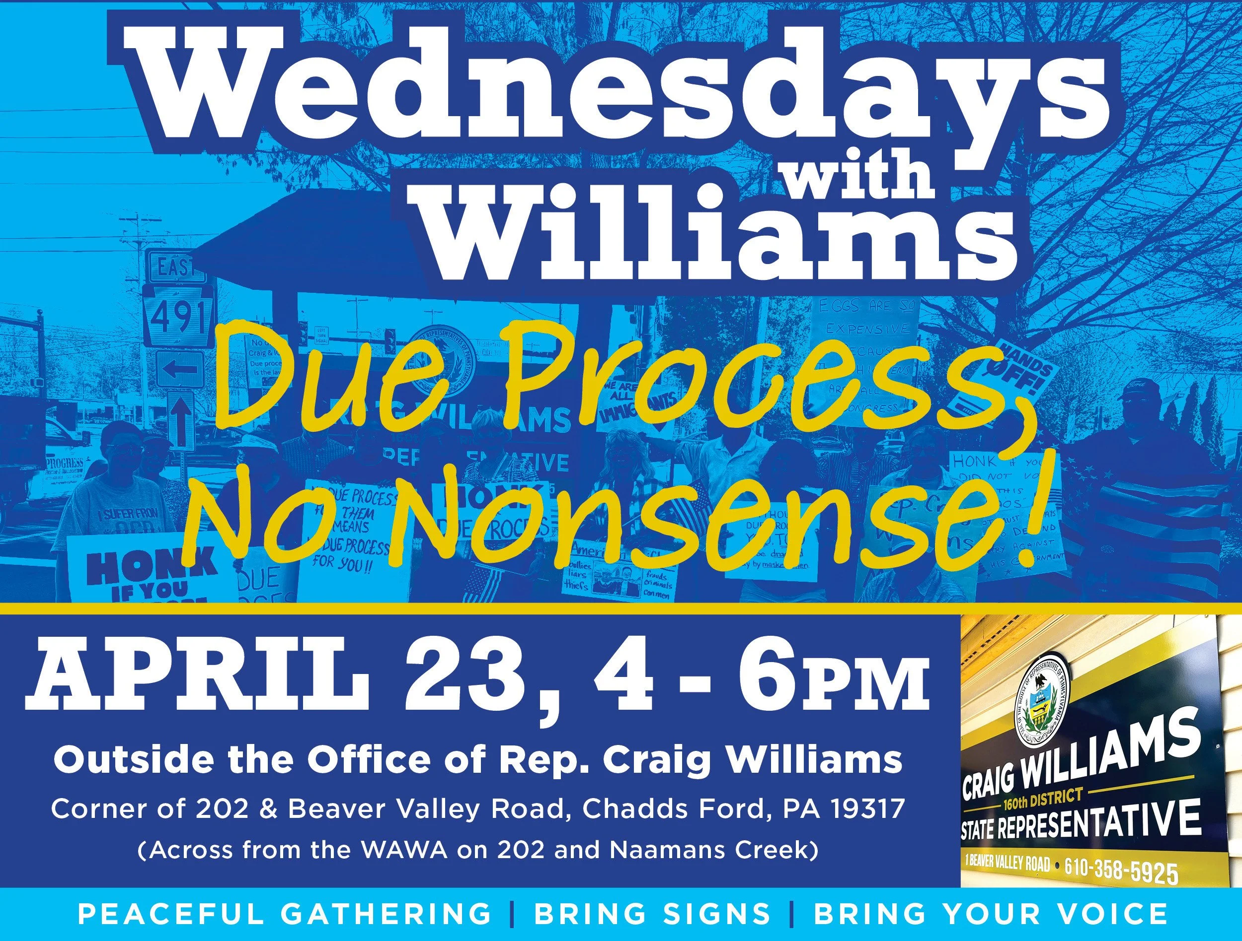 As Heather Cox Richardson wrote, "The administration appears to have tried to create a fiction whereby the U.S. can spirit anyone out of the U.S. without due process, render them to prison in another country, and then declare it doesn't have the power to get the person back." At the state level, Rep. Williams is working to introduce a bill that supports the punishment of elected officials for not complying with ICE, while ICE is violating individuals' right to due process. Let our representative know this is unacceptable by coming out on Wednesday, April 23rd.