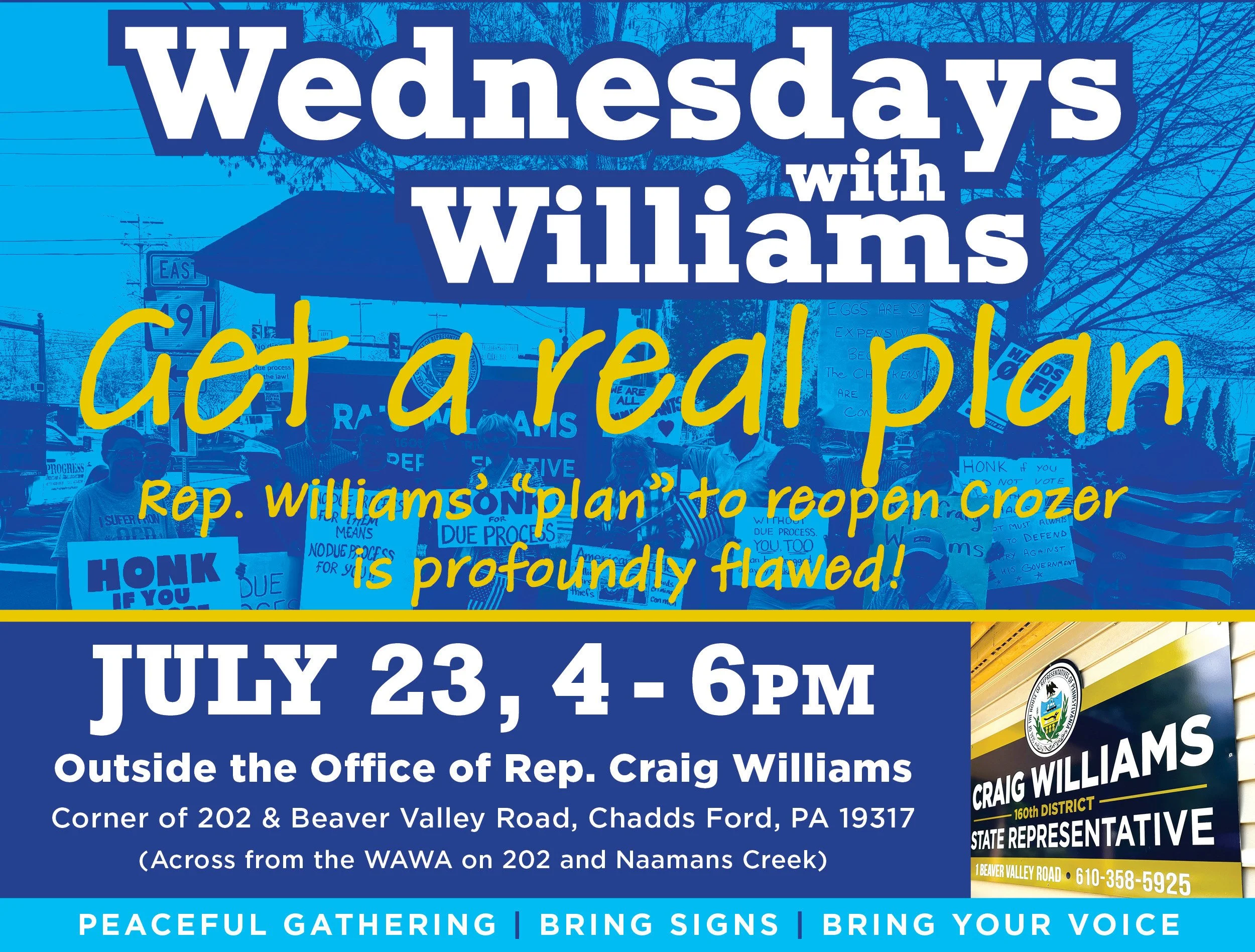 Pennsylvania State Representative Craig Williams has proposed using $200 million from last year’s state budget to create a Hospital Acquisition Assistance Fund. Craig Williams claims that these funds are unspent, but they are in fact a part of the Medicaid operating budget that helps over 3 millions Pennsylvanians, including children, pregnant women, retirees, people with disabilities, and those needing long-term care. Under his plan, these funds would be used to entice a buyer to reopen Crozer Hospital and potentially other shuttered facilities. This fund would be overseen by the Pennsylvania Department of Community and Economic Development.